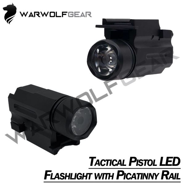 >  WARWOLFGEAR >  Tactical Pistol LED Flashlight with Picatinny Rail >  Black color available >  For Airsoft Toys only
